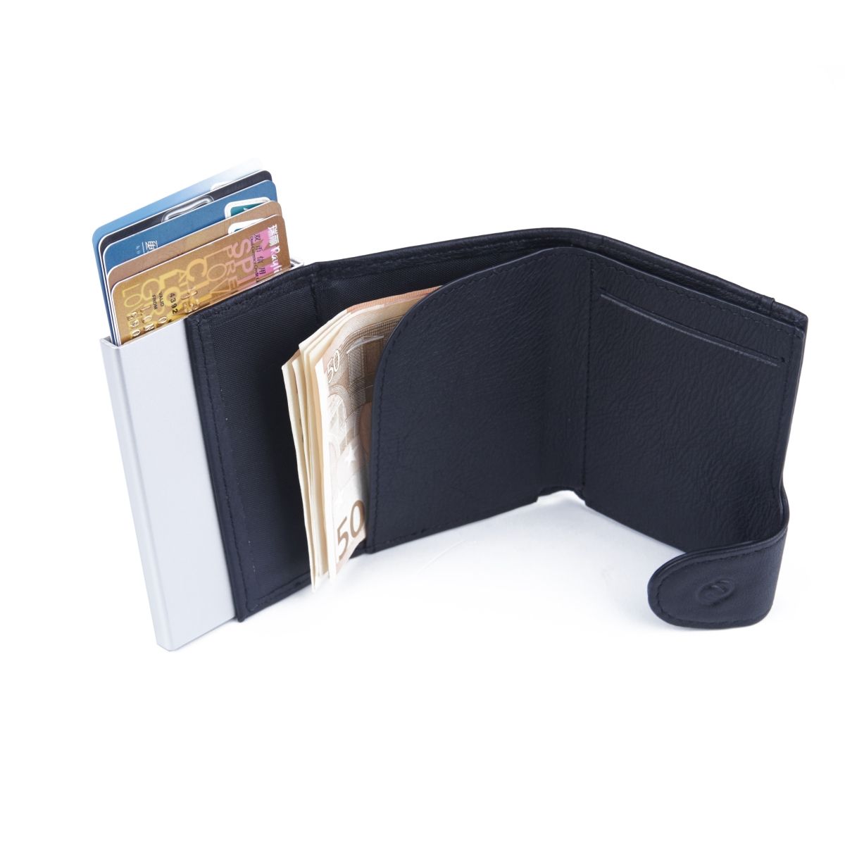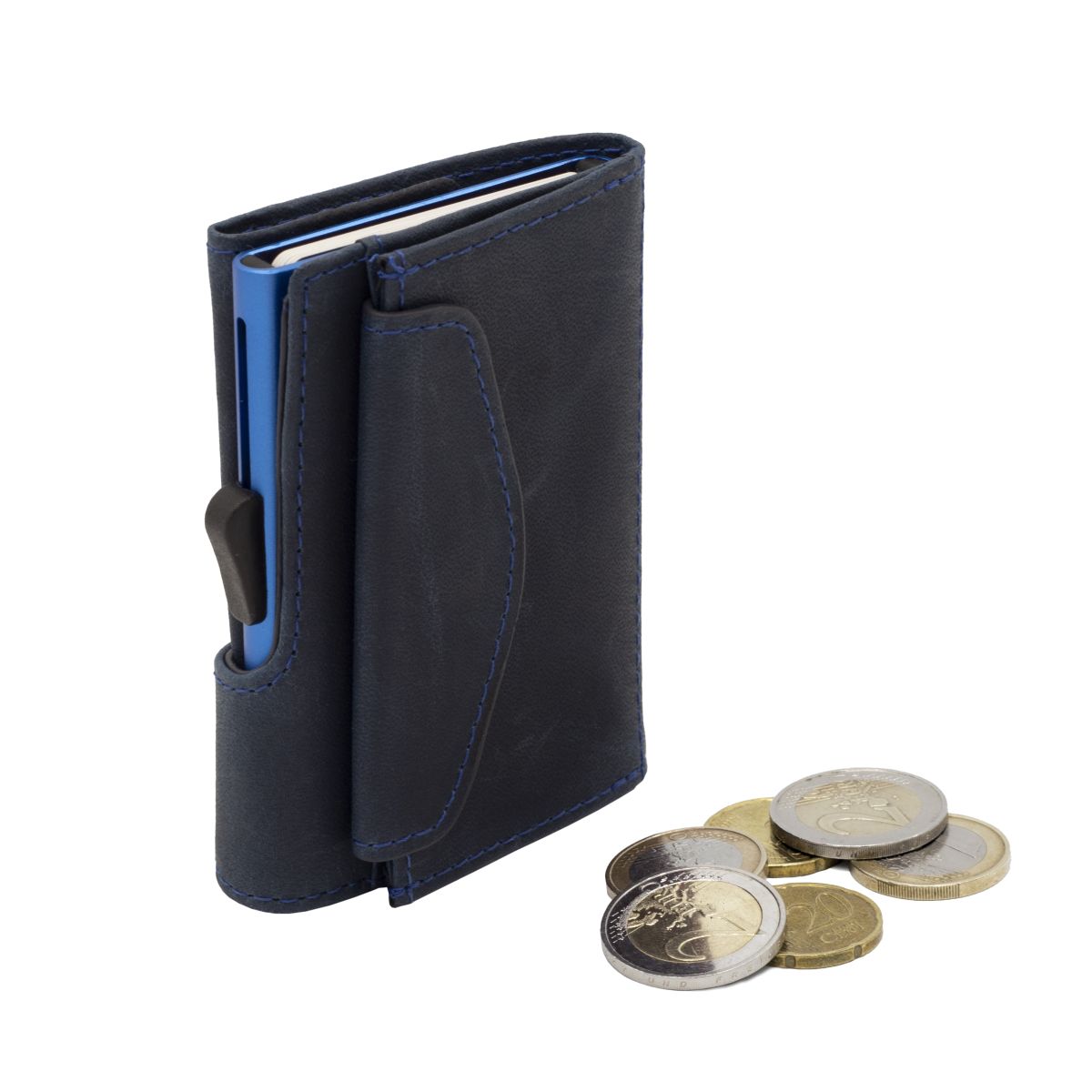 C-Secure Kaarthouder/Portefeuille Leder met Geldvak - 4-7 Kaarten - Naval