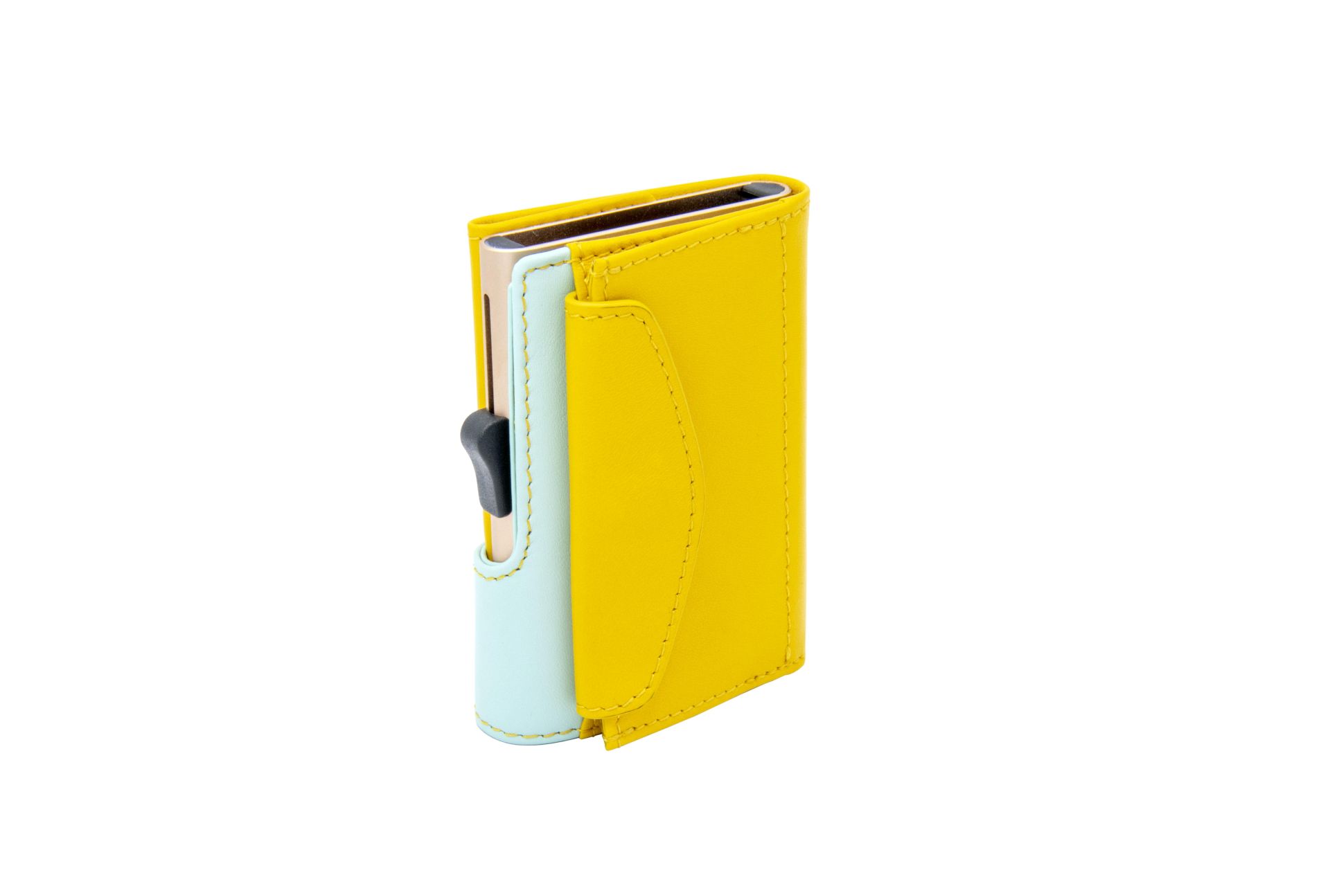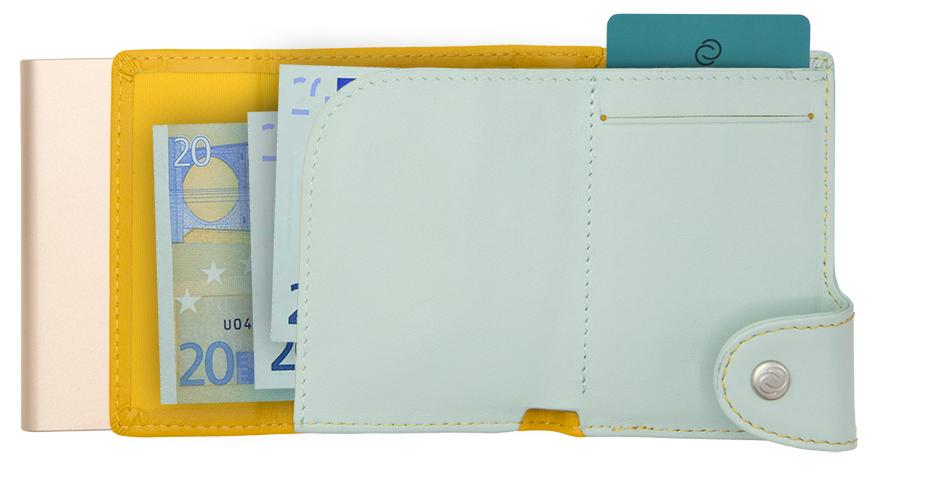 C-Secure Kaarthouder/Portefeuille XL Leder - Geldvak - Saffron/Aqua - Gold
