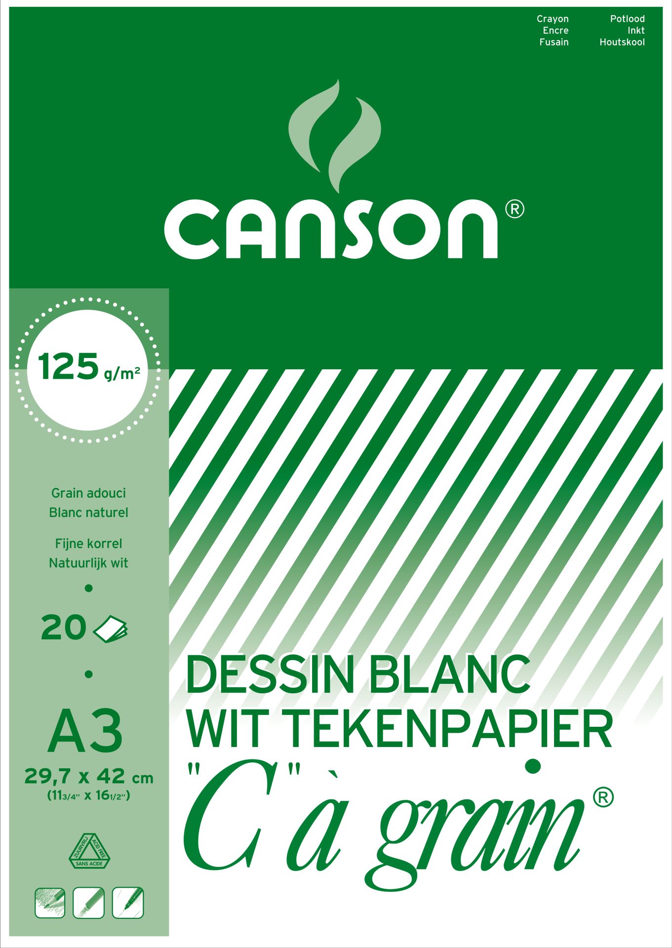 Canson Tekenblok C'a Grain Wit A3 - 125g - 20 Vellen