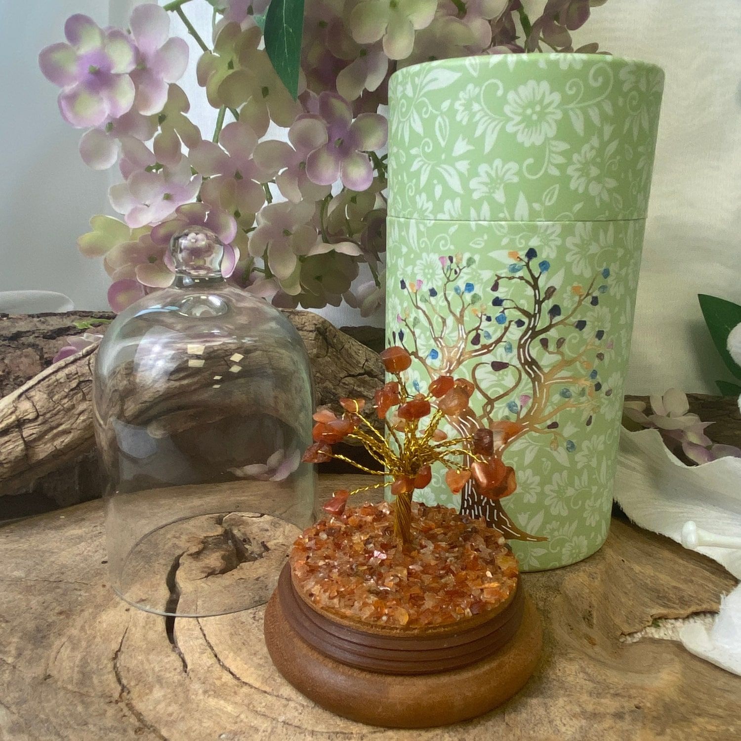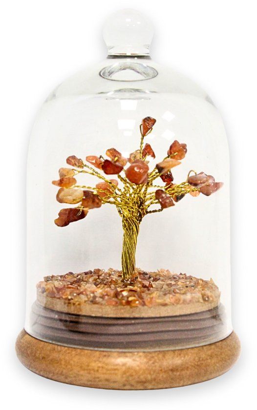 Carneool Edelsteen Boompje onder Glazen Stolp - 7.2x12.6 cm