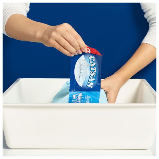 Na 7 à 10 dagen (afhankelijk van gebruik) kan je de Smart Pack eenvoudig zonder knoeien in zijn geheel uit de kattenbak halen. Trek de randen naar elkaar toe, knoop het dicht en gooi de pack bij het afval. Catsan Smart Pack zorgt ervoor dat de kattenbak voor een langere tijd niet alleen schoner, maar ook droger blijft. Precies zoals jouw kat dat wil!