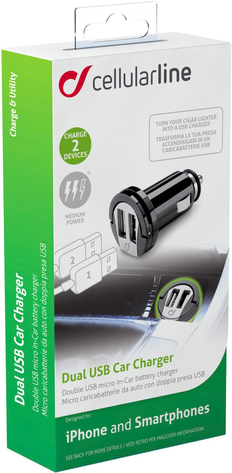Cellularline Car charger 2x USB-A, 10W/2A Zwart
