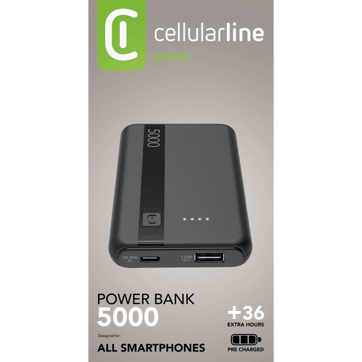 Cellularline Powerbank Charger Entry 5.000mAh - 1x USB-A Output 12W + 1x USB-C Input Zwart