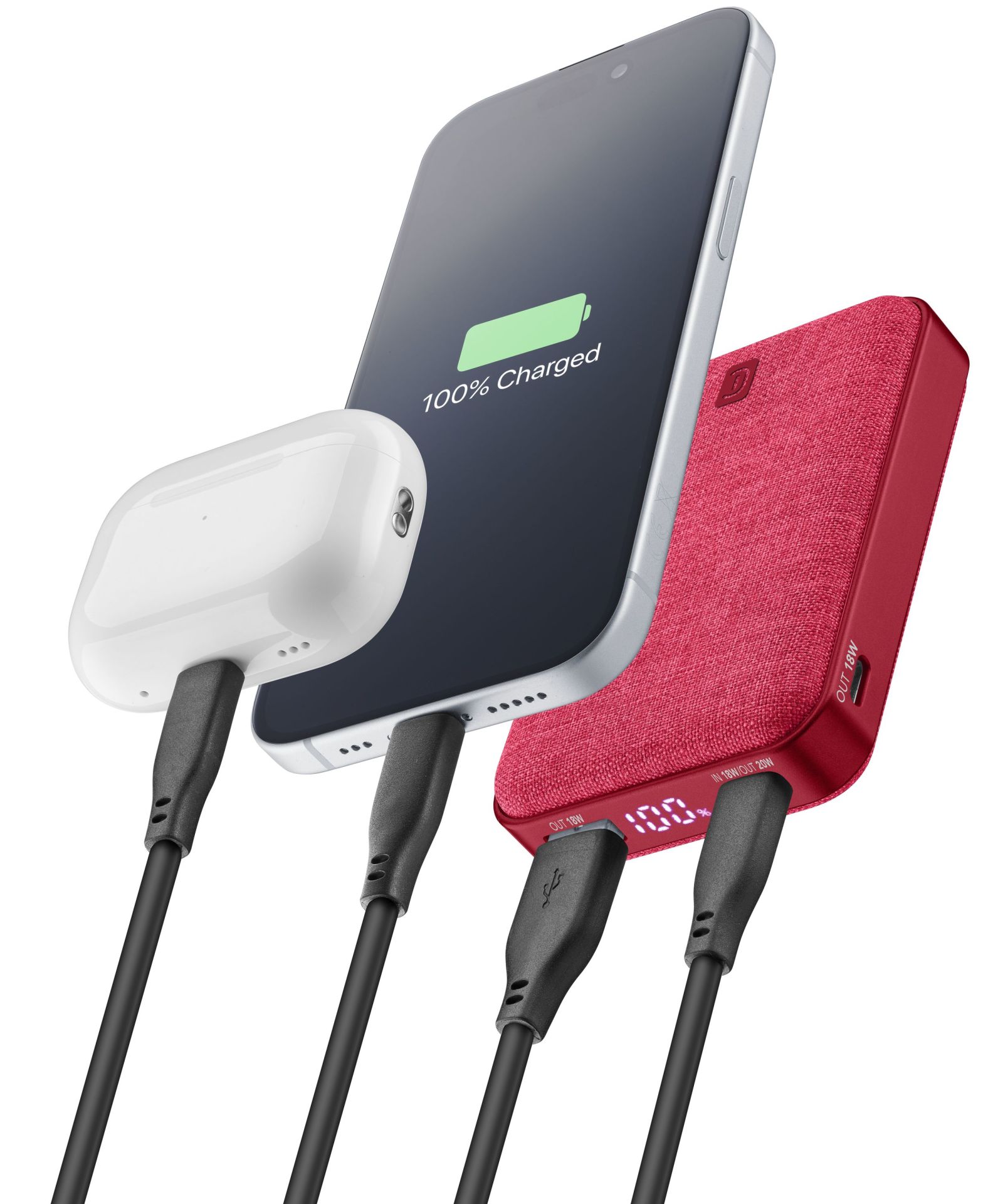 Cellularline Powerbank Draagbare Lader Glam, 10.000mAh - 1x USB-C Output 20W, 1x USB-C Output 18W, 1x USB-A Rood