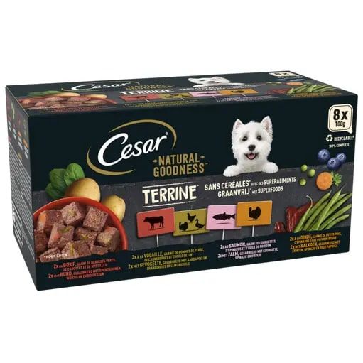 en varkenslever 4%), groenten* (waarvan worteltjes 2%, sperziebonen 2%),