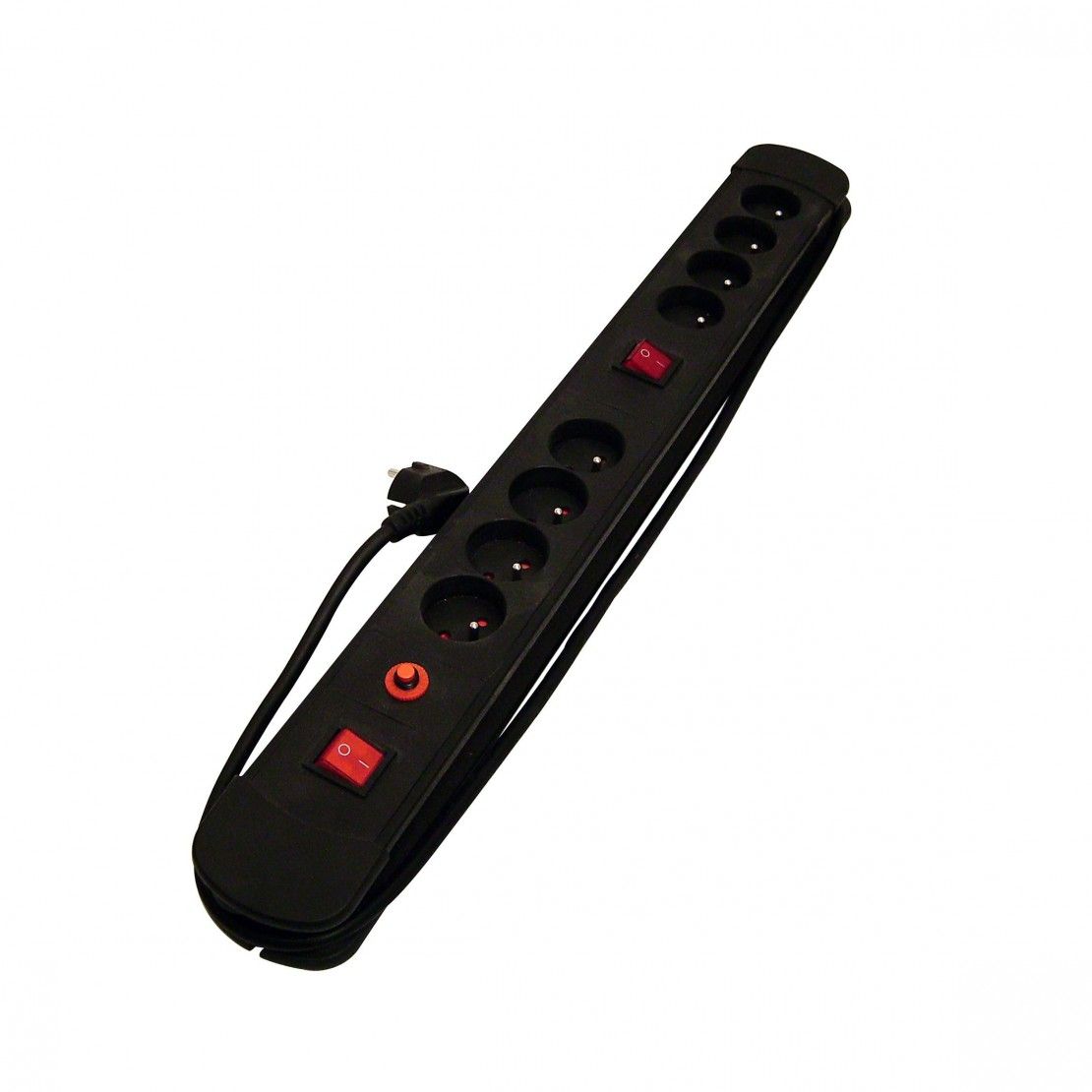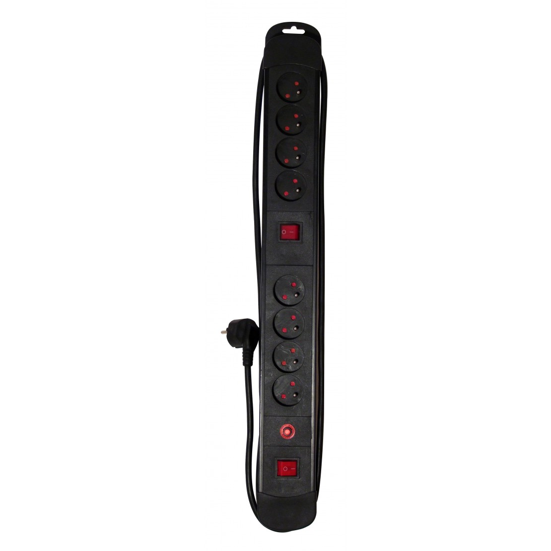 Chacon Stekkerdoos 8-voudig 1.5 m Snoer 2 Schakelaars Zwart