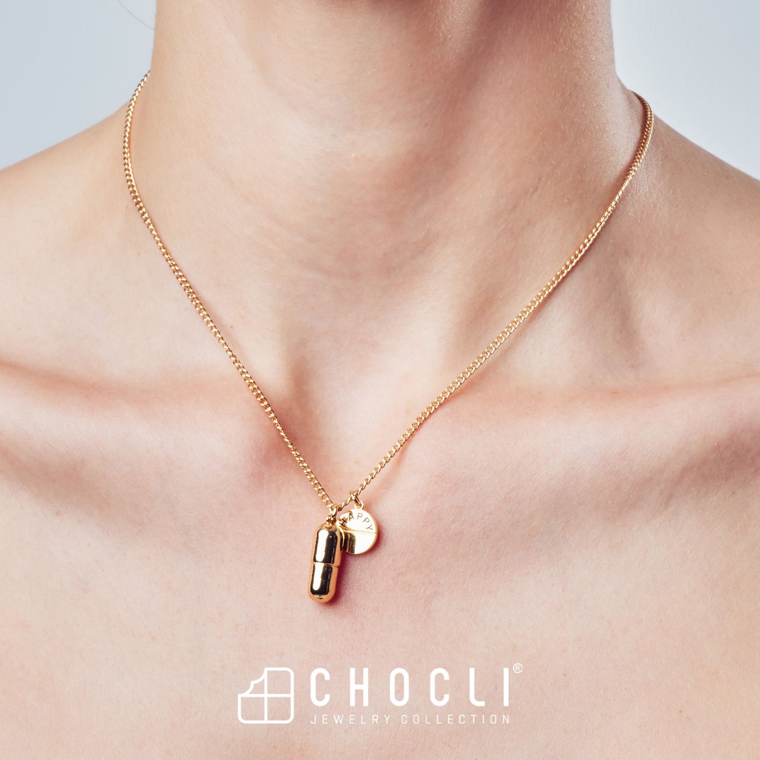 Chocli Halsketting Happy Pill 18K Gold Plated