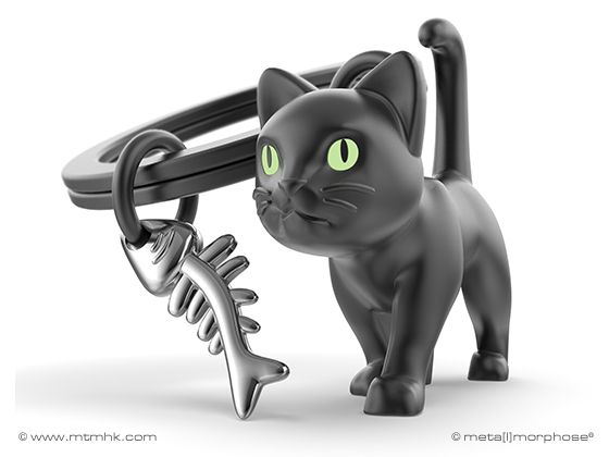Chocli Sleutelhanger Animal Collection - Kat met Visgraat - Zwart/Chrome - Glow in the Dark