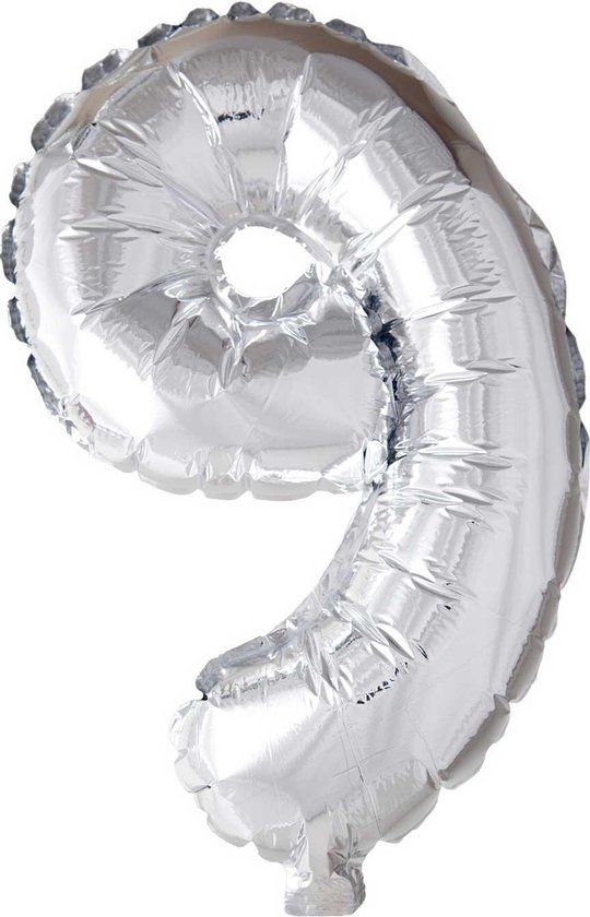 Cijfer Ballon Zilver folie, nummer 9 40 cm