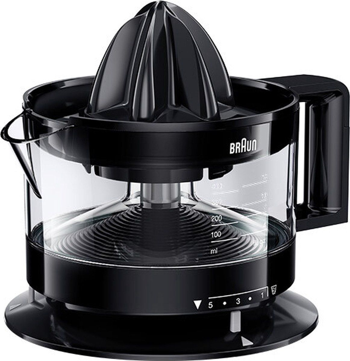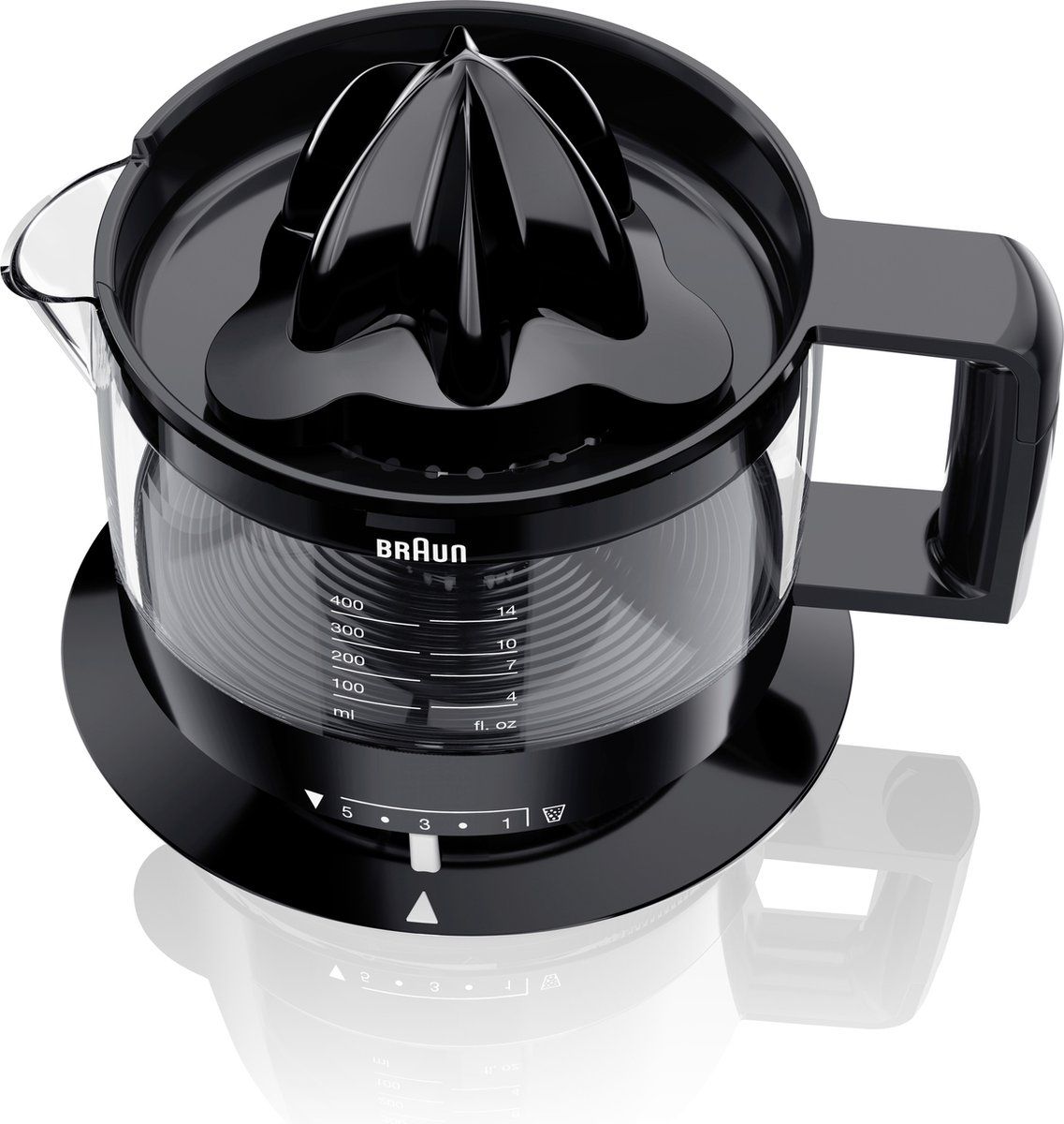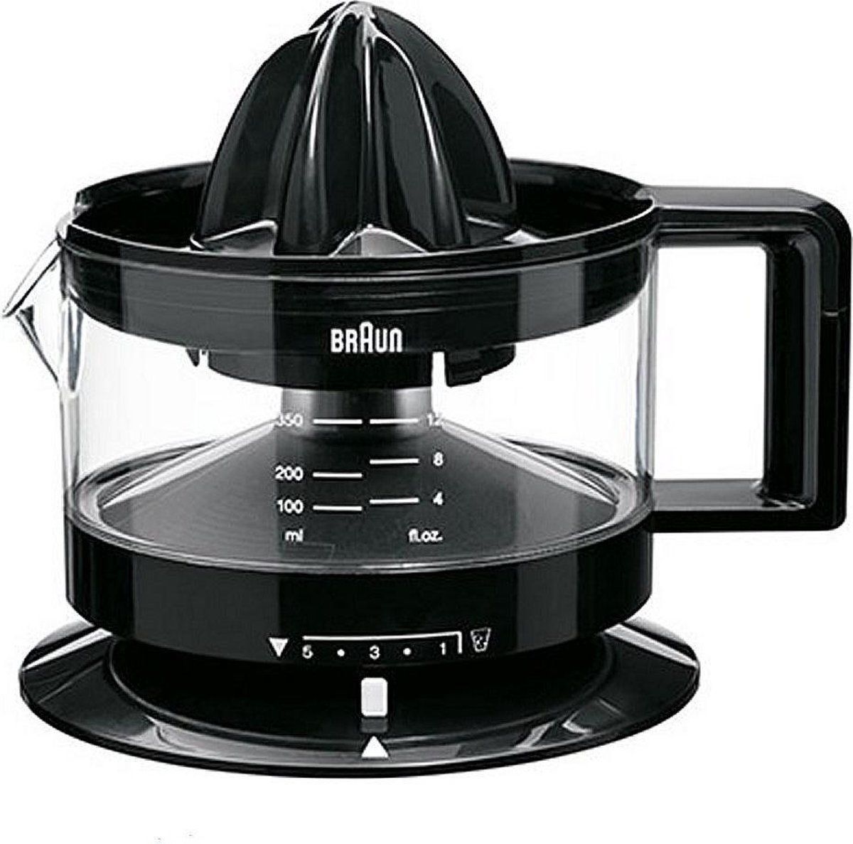 Citruspers 350 ml, draait 2 richtingen, regelbare pulpzeef, stofdeksel