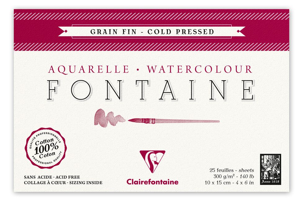 Clairefontaine Aquarelblok Fontaine Wit 10x15 - 300 g - Grove korrel - 25 Vel