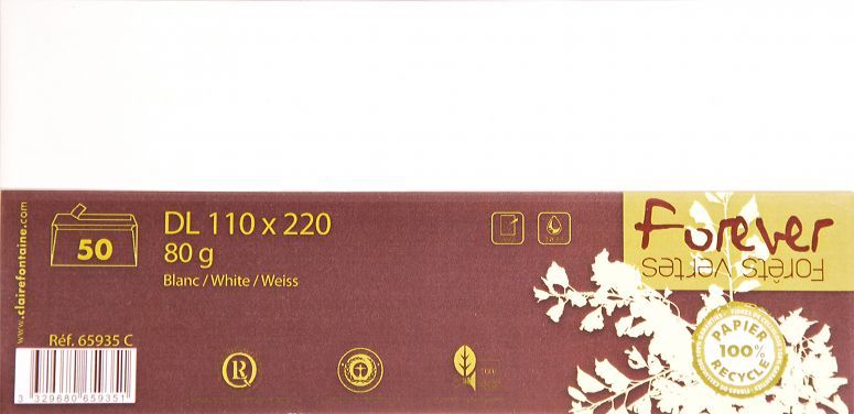 Clairefontaine Enveloppen Wit 110x220mm - 80 g - 50 stuks