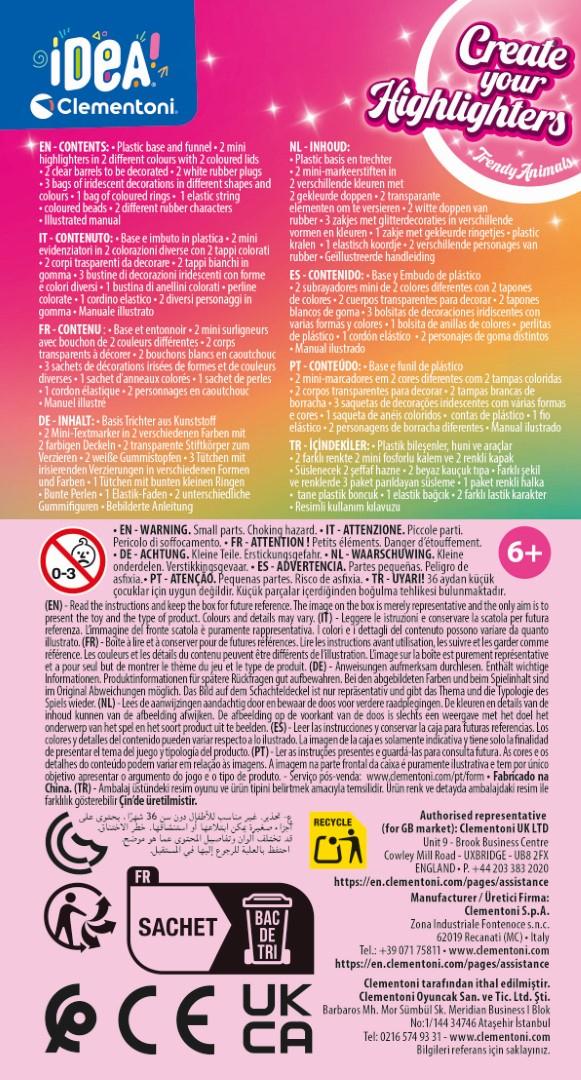 Clementoni Idea, maak je eigen Markeerstiften, Trendy Dieren, 2 pack