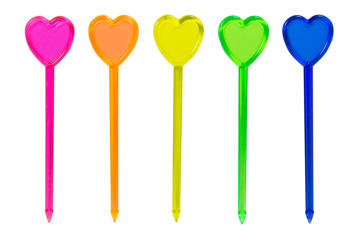 Cocktail Prikkers Hart 8.5cm - 24 Stuks in Verschillende Kleuren