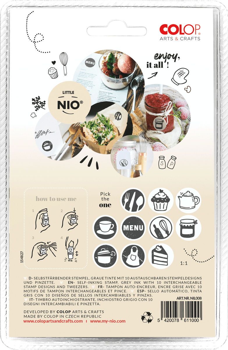 Colop Little Nio Stempel Set Kitchen Rond - 17 mm - Grijs - Blister