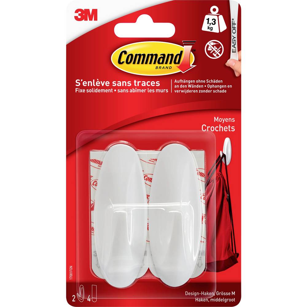 Command by 3M Designer Haak Medium Wit 2 haken + 4 strips