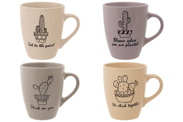 Cosy&Trendy Beker Cactus 35cl Assorti D8.5xH10.5cm - Koffietas - Aardewerk