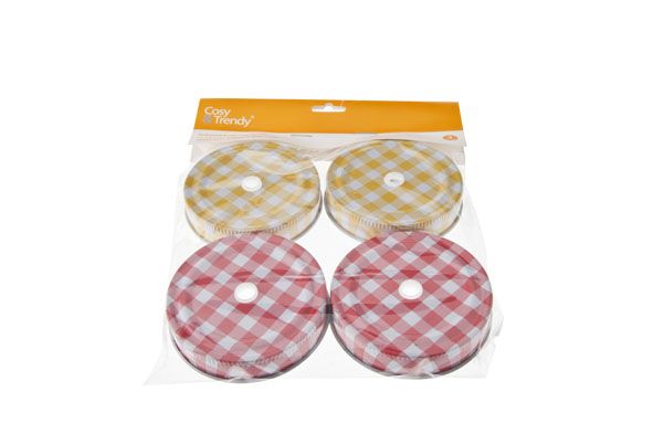 Cosy&Trendy Deksel vr Drinkbokaal Mason 7 cm Geel-Rood 4 stuks