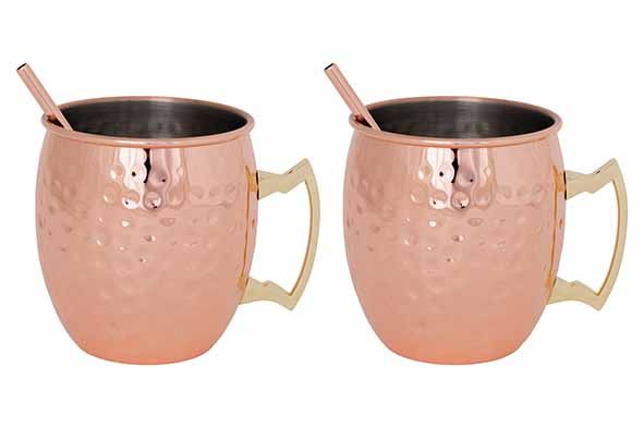 Cosy&Trendy Drinkbeker Moscow Mule 450ml set 2 stuks - Koper - 8.5x10 cm - met Oor