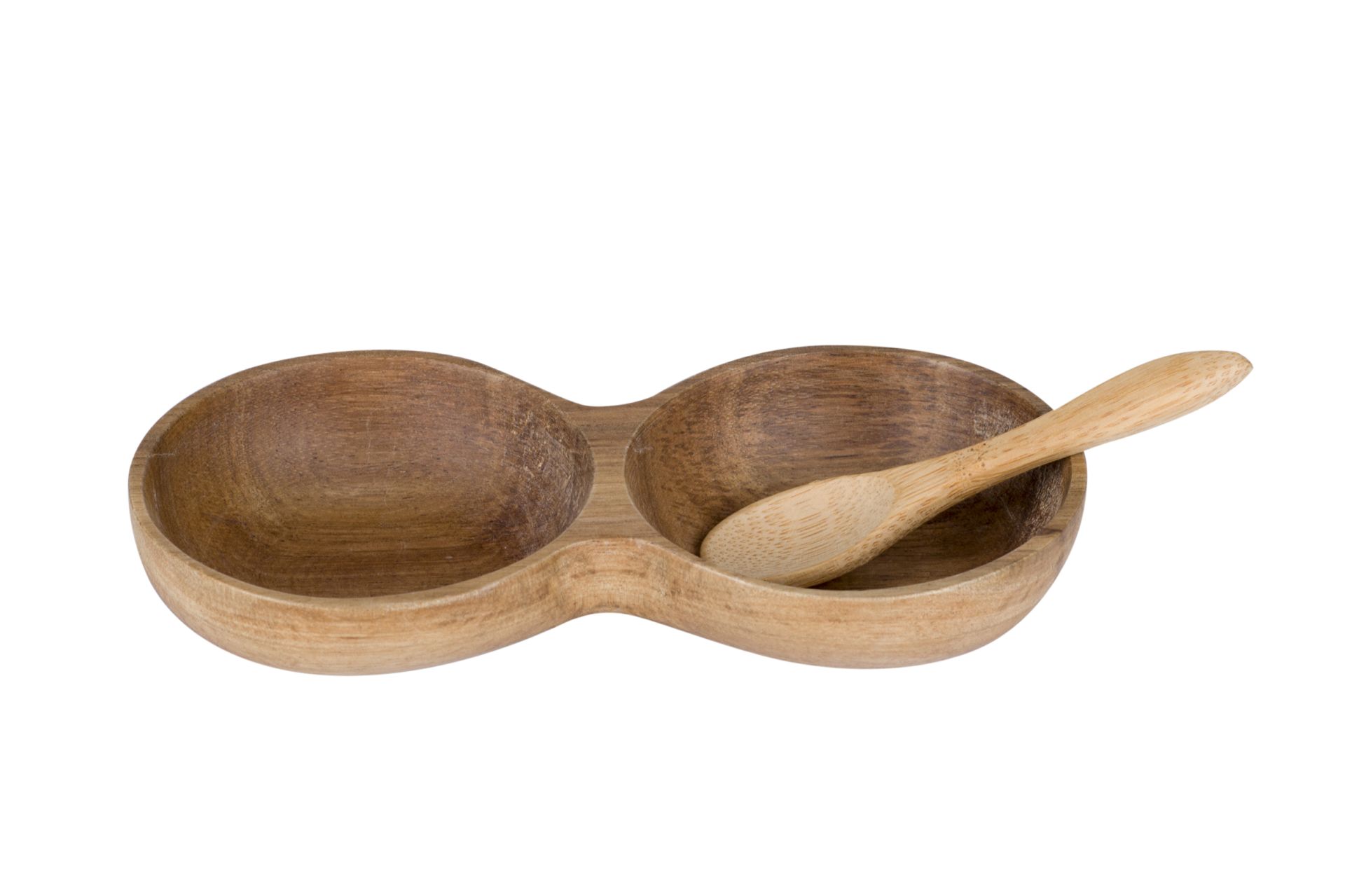 Cosy&Trendy Dubbel Schaaltje Acacia 17x7.5x3.5cm - met Lepel Bamboe