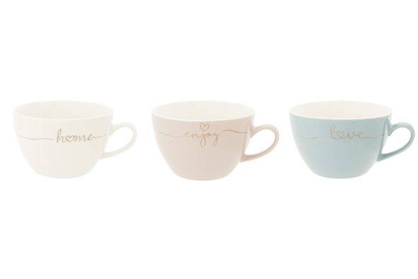 Cosy&Trendy Koffietas 440 ml met Tekst 11.5x7.5 cm - Home/Enjoy/Love - assorti - prijs per stuk