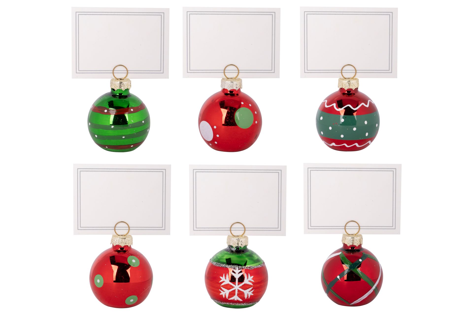 Cosy@Home Kaarthouder Kerstbal Rood/Groen set 6 stuks - Glas - 4x4x9 cm