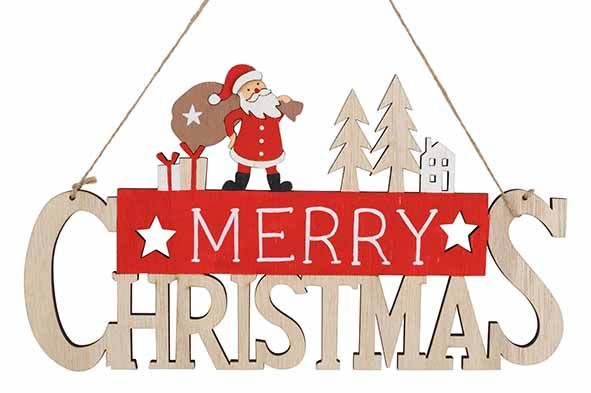Cosy@Home Letterdeco Merry Christmas 30x28 cm - Hanger - Hout - Rood/Wit