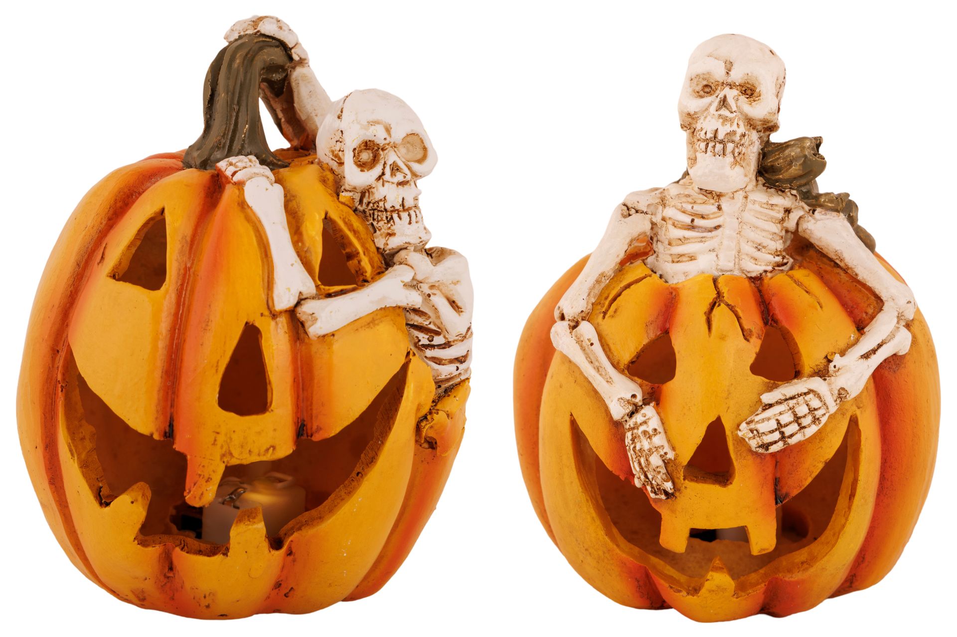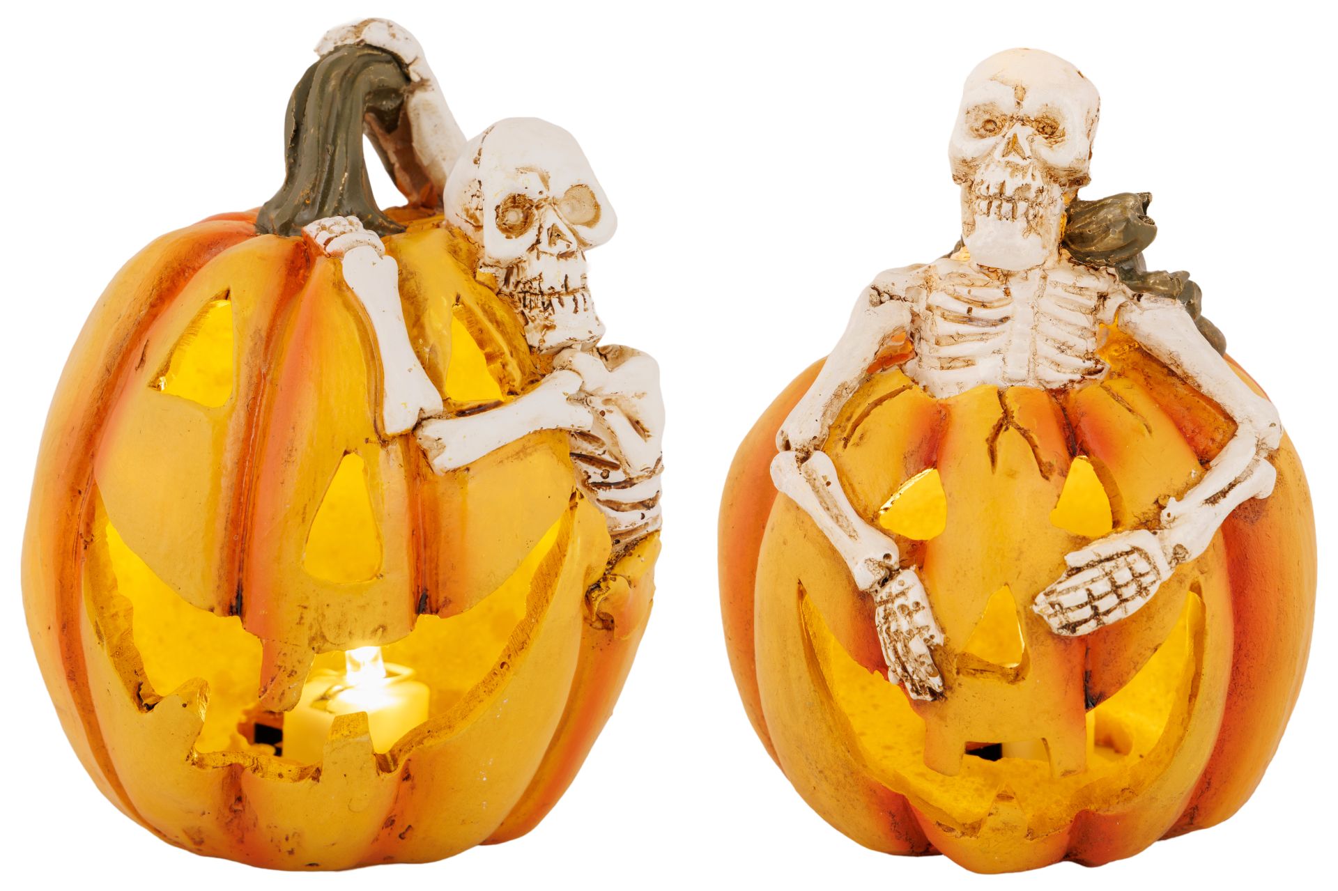 Cosy@Home Pompoen met Skelet & Licht 9x12 cm - incl. Batterijen - assorti - prijs per stuk