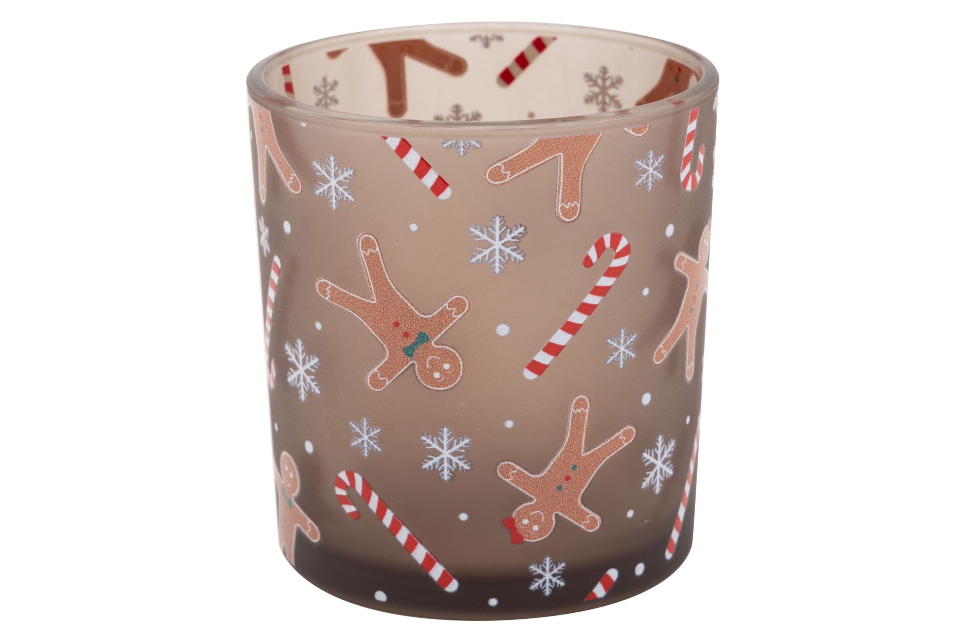 Cosy@Home Theelichthouder Cookie 7x8 cm - Glas - Bruin