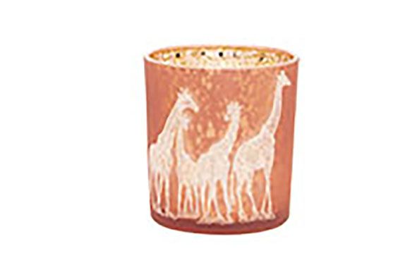 Cosy@Home Theelichthouder Glas Giraffen 7x8 cm - Terracotta