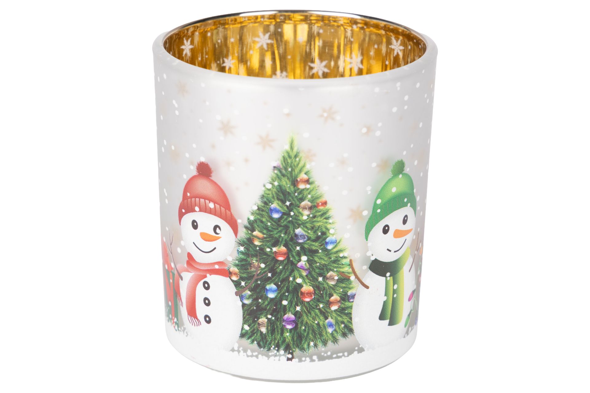 Cosy@Home Theelichthouder Snowman 7x8 cm - Glas - Zilver