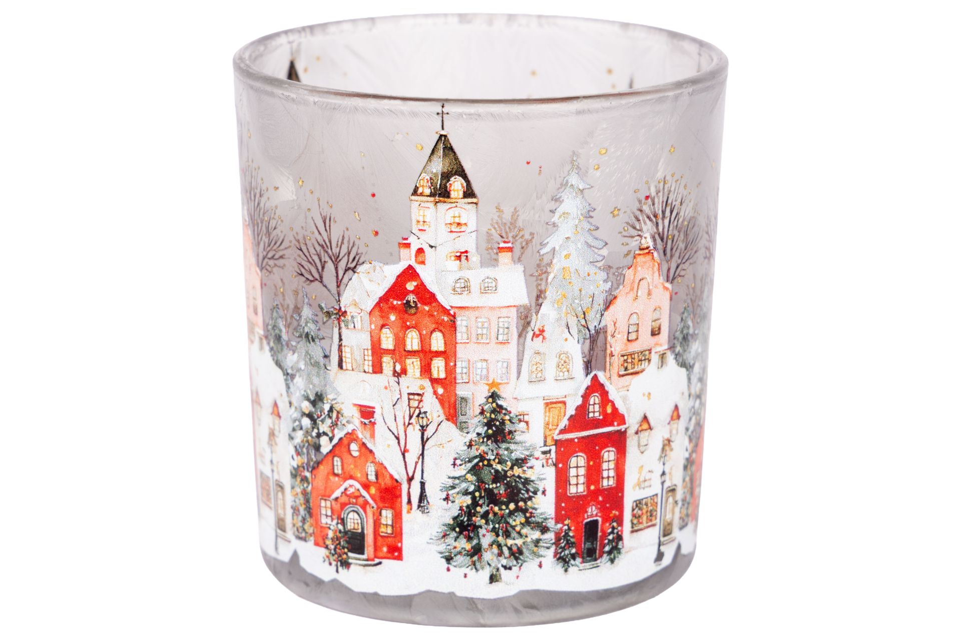 Cosy@Home Theelichthouder Winter Village 7.5x8 cm - Glas