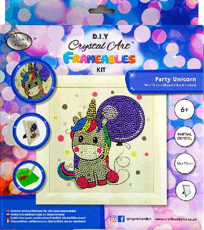Craft Buddy Crystal Art Fremeables 16 x 16 cm, party unicorn