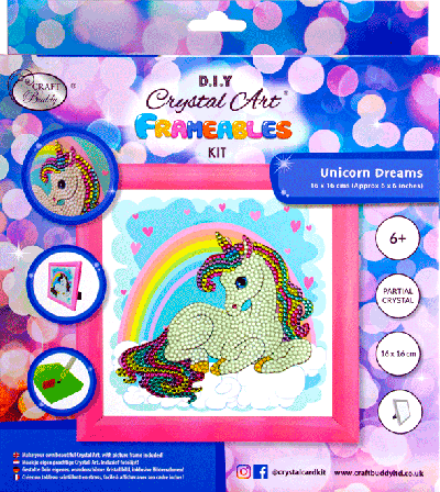 Craft Buddy Crystal Art Fremeables 16 x 16 cm, regenboog met eenhoorn