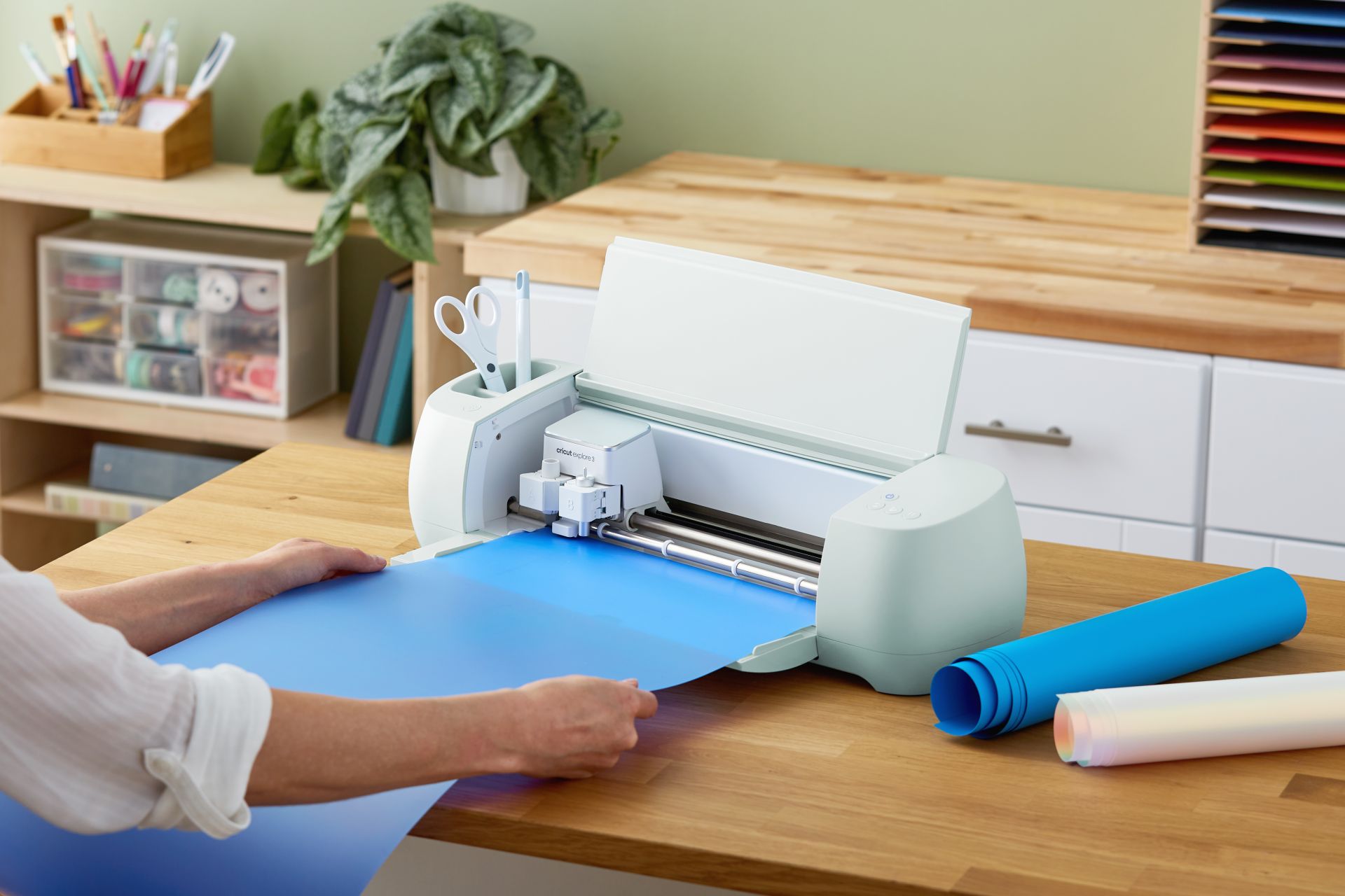Zie je creativiteit omhoog schieten met onze nieuwste DIY-droommachine. Met de gloednieuwe Cricut Explore 3™ kun je snel en nauwkeurig snijden, tekenen, rillen en nog veel meer. De Cricut Explore 3 werkt met een scala aan tools voor het snijden en verfraaien van meer dan 100 materialen zoals hobbykarton, vinyl, Iron-On, glitterpapier, kurk en gebonden textiel. Daarnaast kun je aan de slag met Cricut Smart Materials™ voor superlange sneden tot wel 3,6 meter zonder snijmat. Er gaat een wereld aan creatieve mogelijkheden voor je open, of je nu ontwerpen maakt voor het bedrukken van T-shirts voor een heel voetbalteam of zelf vlaggetjes in een bepaald thema wil creëren. Met de Cricut Explore 3 gaat alles in een handomdraai. Gebruik met de Design Space™-app voor iOS®, Android™, Windows® en Mac®.*