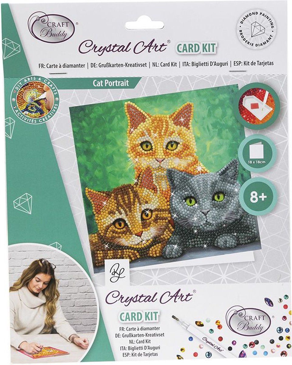 Crystal Art Card Kit 18X18 cm - Cat Portrait