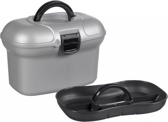 Curver Naai/Beautykoffer Zilver/Zwart met Tray - 34x23x23 cm