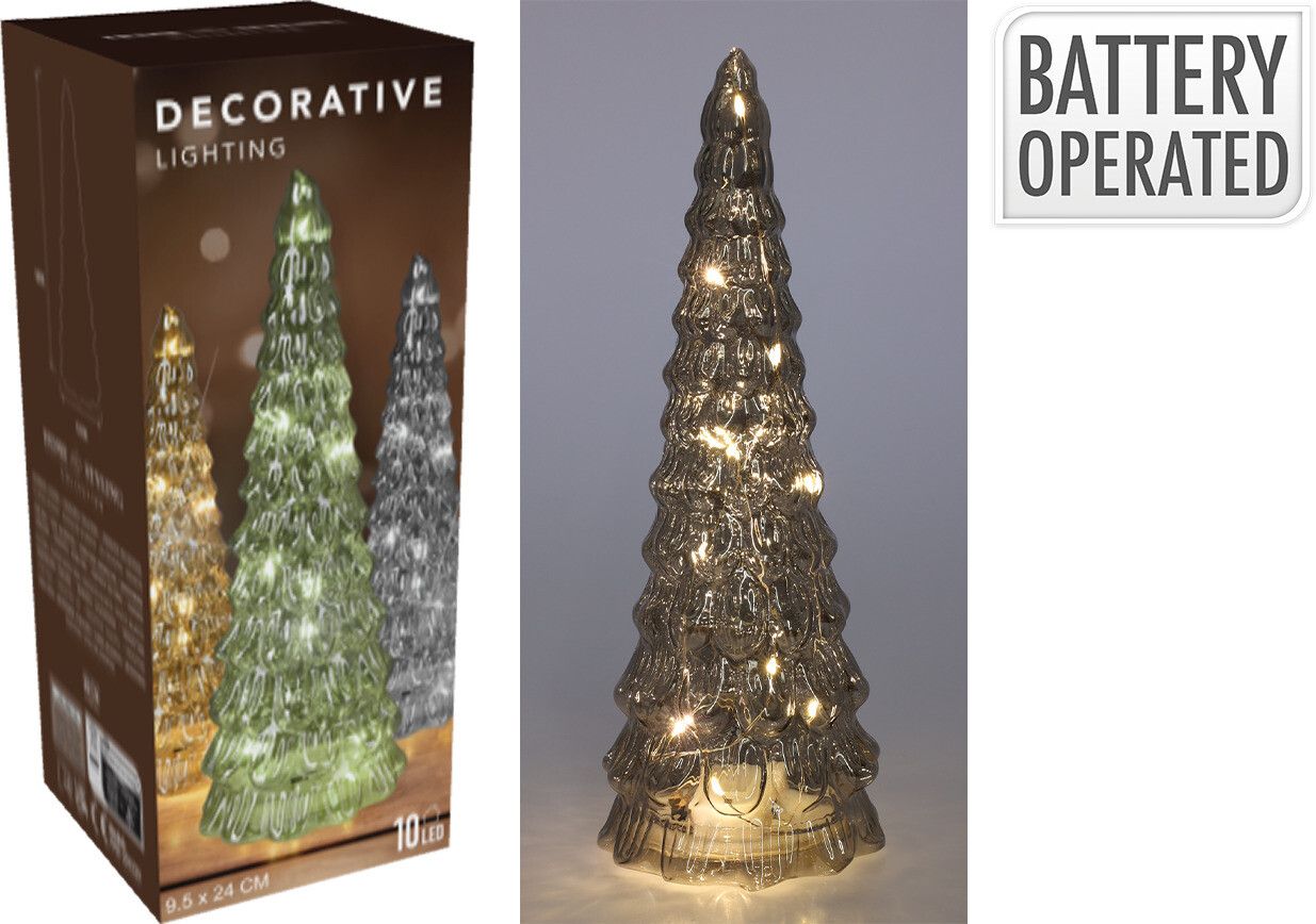 Deco Boom LED Groen 24cm - Glas - 10 leds - op Batterijen (excl.)