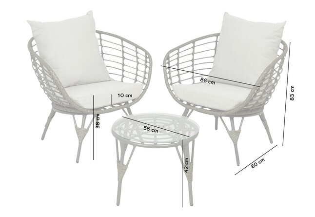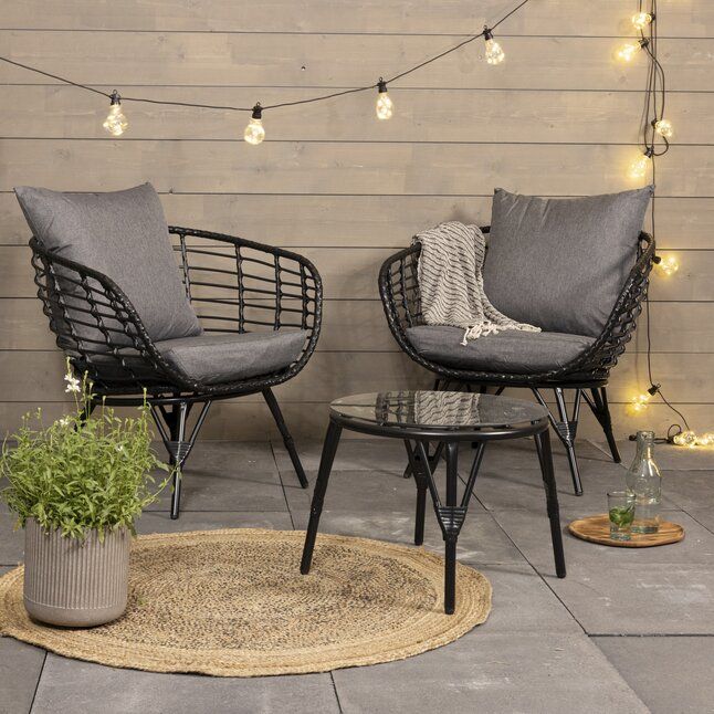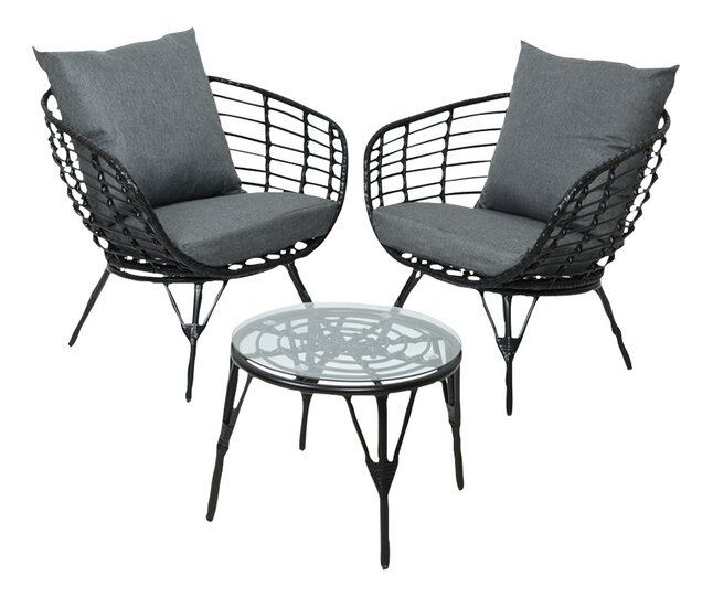 Decoris Balkonset Evora Wicker Zwart met Glazen Tafelblad