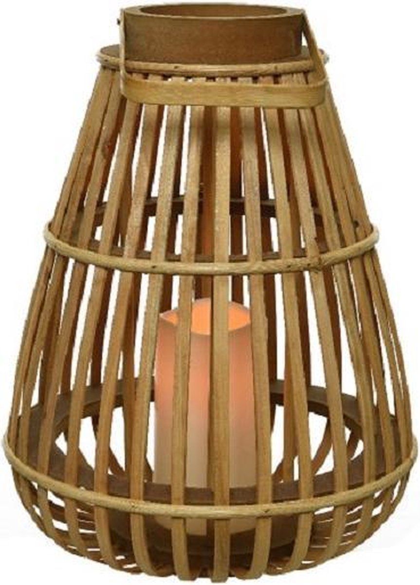 Decoris Lantaarn met Ledkaars Bamboe met Timer 25x25x27.5 cm
