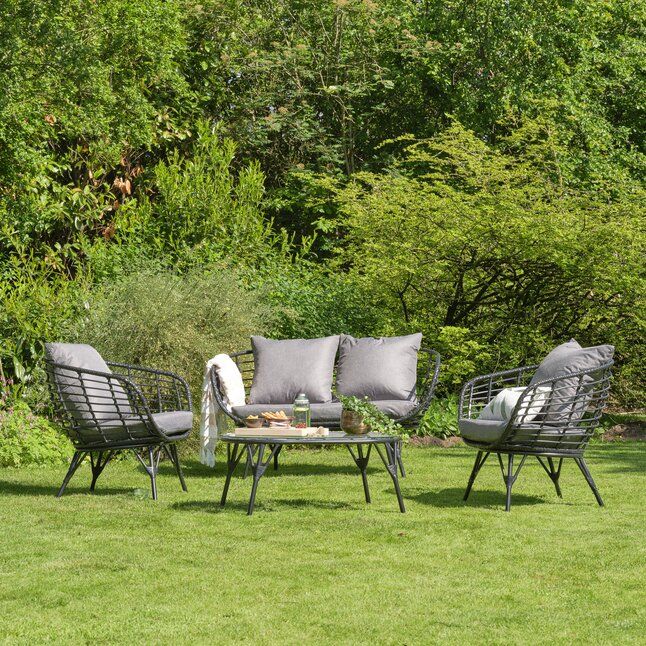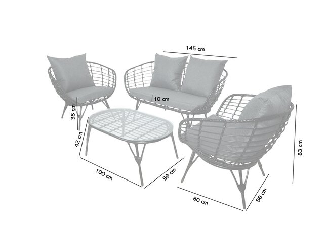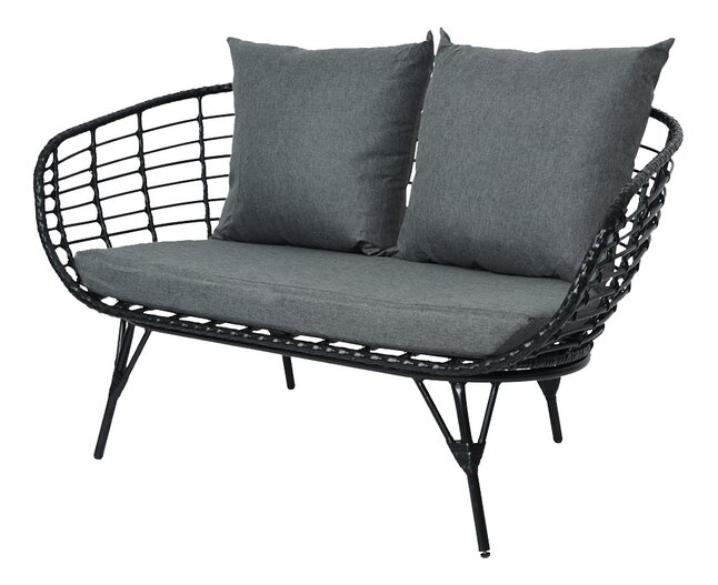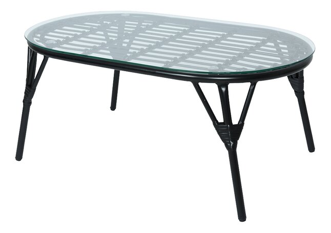 Decoris Loungeset Evora Wicker Zwart met Glazen Tafelblad