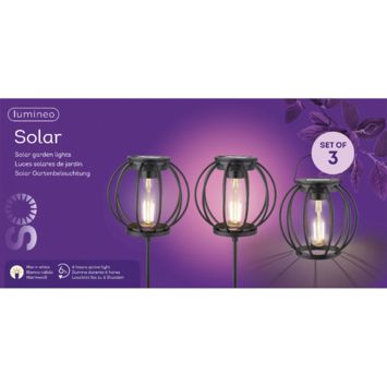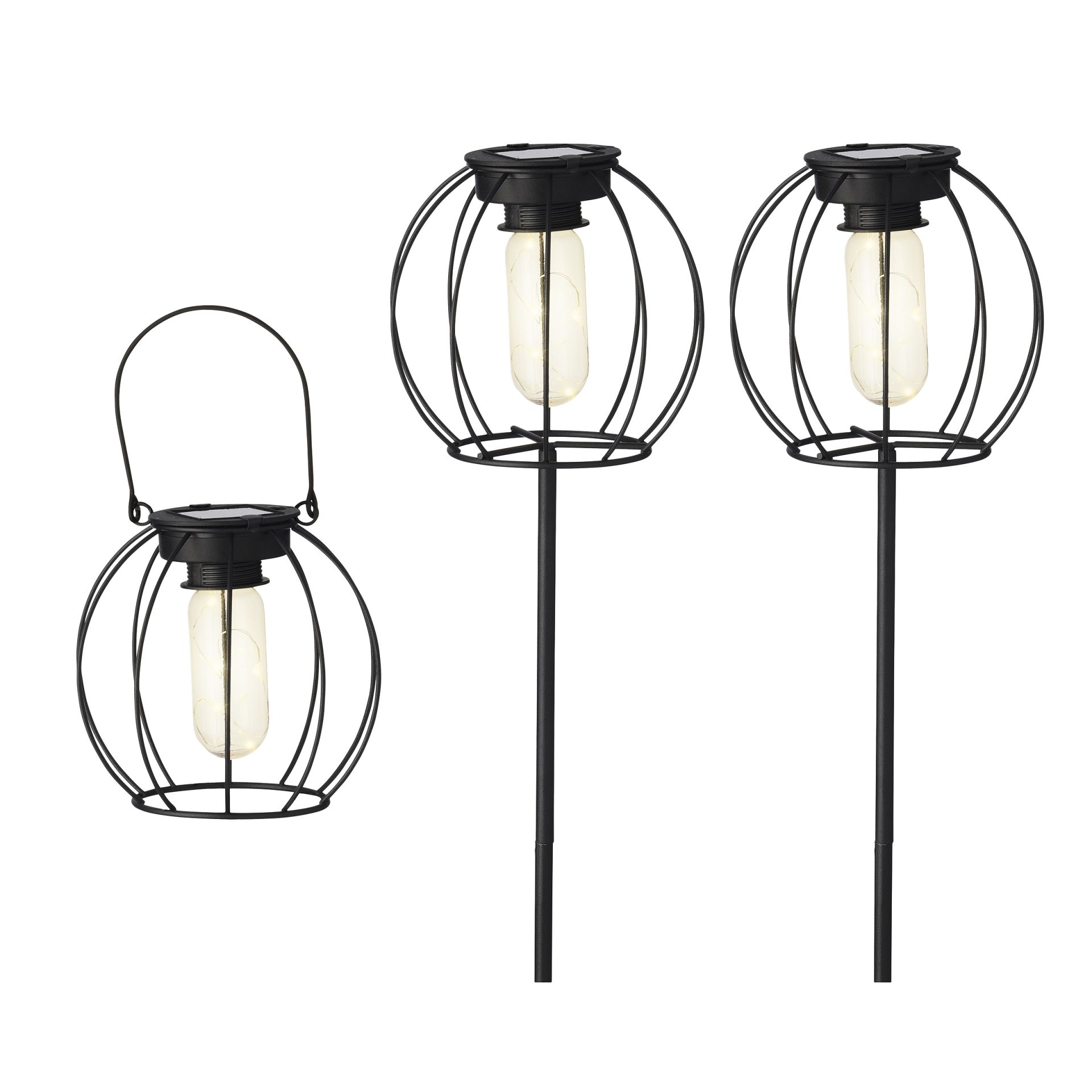 Decoris Tuinverlichting set Metaal Zwart Solar 2 Steeklampen + 1 Lantaarn
