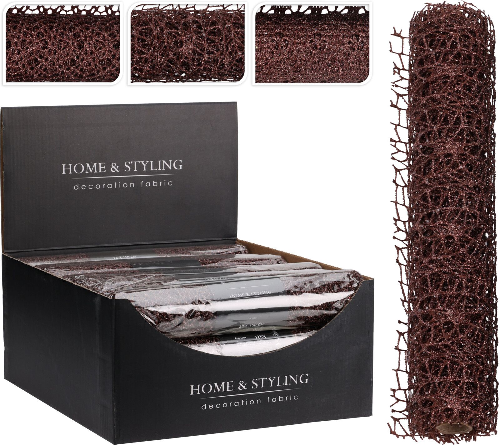 Decostof Mesh Bruin Glitter 28x150 cm - assorti - prijs per stuk