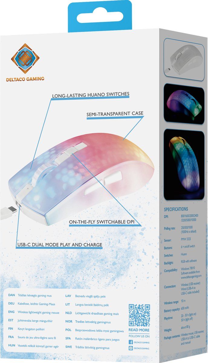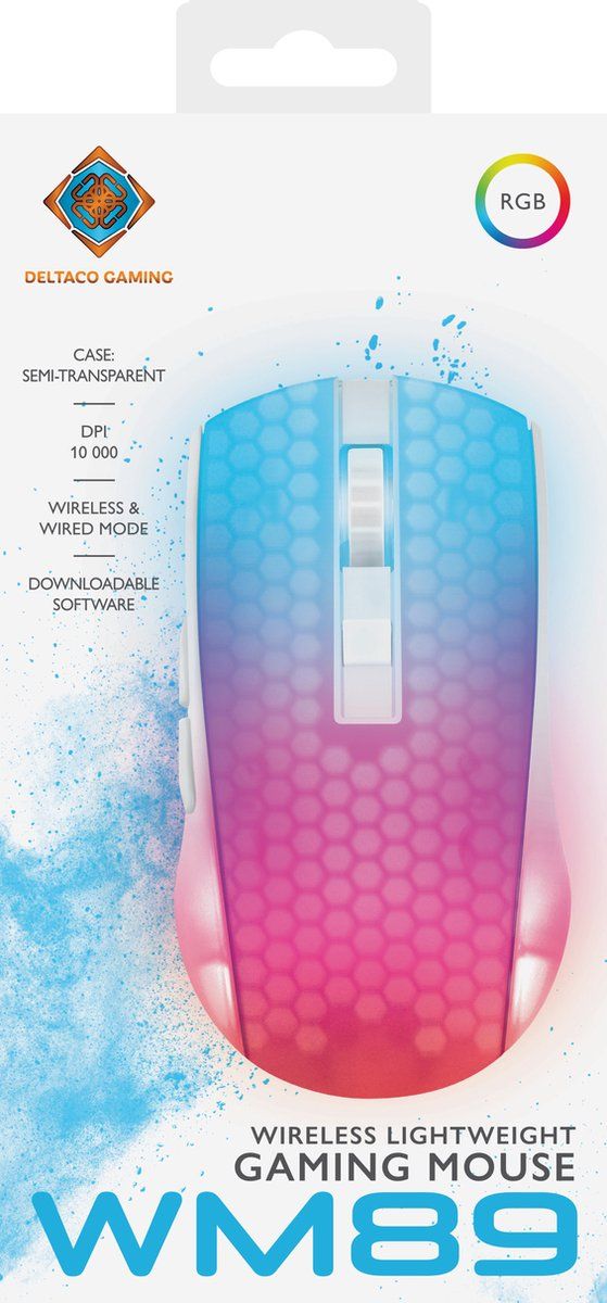 Deltaco Gaming Mouse WM89 USB-C Transparant-Wit RGB Lightning