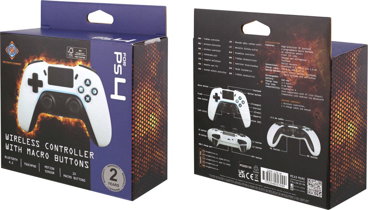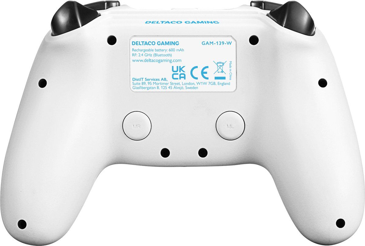 Deltaco PS4-PC Dualsense Controller Wireless-Bluetooth 4.0 - Wit