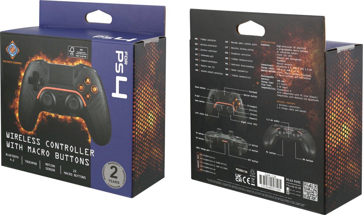Deltaco PS4-PC Dualsense Controller Wireless-Bluetooth 4.0 - Zwart