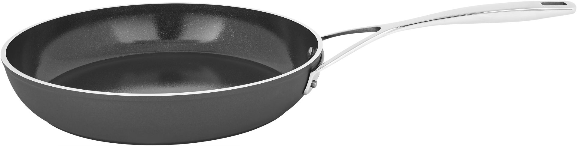 Met deze robuuste en tegelijk lichte Alu Pro 5 bakpan van 28 cm bak je naar hartenlust kippenspiesjes, cordon blue, witlof, aardappelschijfjes, gepaneerde groenteburgers enzovoort, zonder kleven. De krasbestendige keramische Ceraforce antikleeflaag – het gezonde alternatief – biedt je bovendien een gezonde oplossing. Je bereikt een meer dan geslaagd resultaat met minder vetstof. Gebruik enkel accessoires van hout of silicone, om beschadiging te voorkomen. De body in gesmeed aluminium is extra dik en meer dan stevig. Dankzij de unieke Radiant bodem is en blijft je pan extra stabiel en in optimaal contact met de kookplaat. De warmte wordt egaal verspreid. De exclusieve TriplInduc technologie presteert perfect op inductie. Je hebt tot 30% minder energie nodig voor dezelfde temperatuur. Deze pan reageert supersnel zodra je overschakelt naar een andere fornuisstand. Geschikt voor alle kookplaten, zeker voor inductie. Met Alu Pro 5 haal je doordacht en vlot hanteerbaar design in huis, met een ijzersterke prijs-kwaliteitverhouding. Het matzwarte gesmede aluminium contrasteert prachtig met de blinkende roestvrijstalen greep. Dit lichtgewicht hanteer je supervlot en reinigen gaat als vanzelf. Ben je een liefhebber van grillen in de oven of van flamberen? Dan heb je ook een pan zonder antikleeflaag nodig.