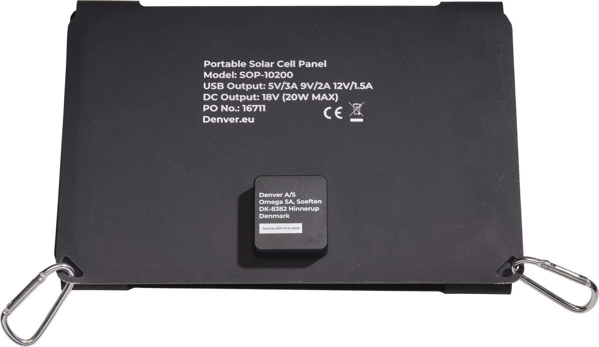 Denver Opvouwbaar Zonnepaneel 20W QC3.0 voor Snel Laden