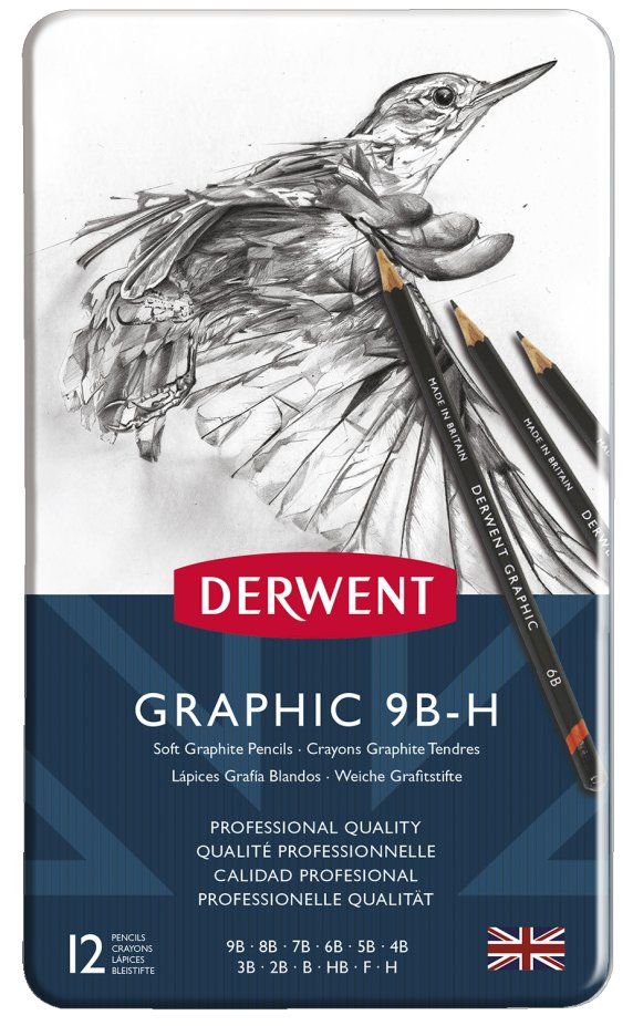 Derwent Graphic Potloden Set Soft 12 stuks - Metalen Doos - 9B-H