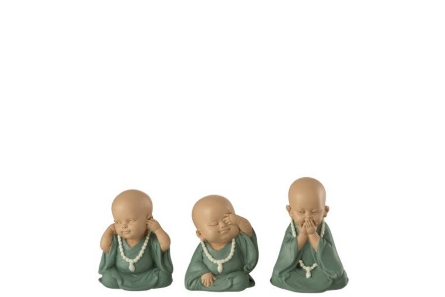 J-Line Monnik Horen/Zien/Zwijgen 7.7x6.7x9.2 cm - Petrol - assorti